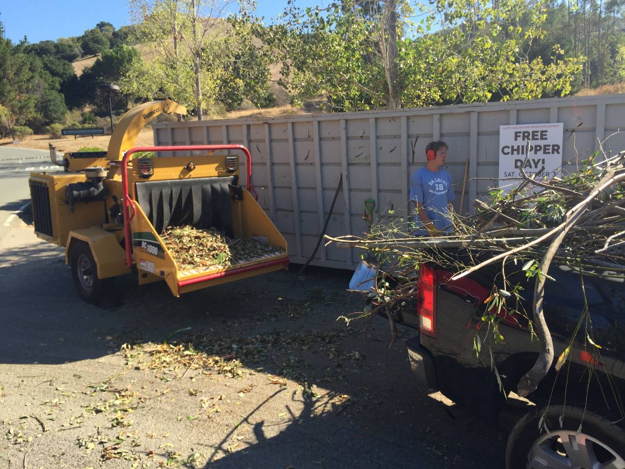 To prepare for chipper day, please cut your brush to 4 inches in diameter. You may bring brush, bay tree saplings, scotch broom, branches and other yard trimmings. Please, no grass, rocks or fire wood. Brush will be chipped on site and taken for recycling to Marin Resource Recovery Center. Please do your part to clear your property and provide Defensible Space to protect yourself and your family from wildfire danger.